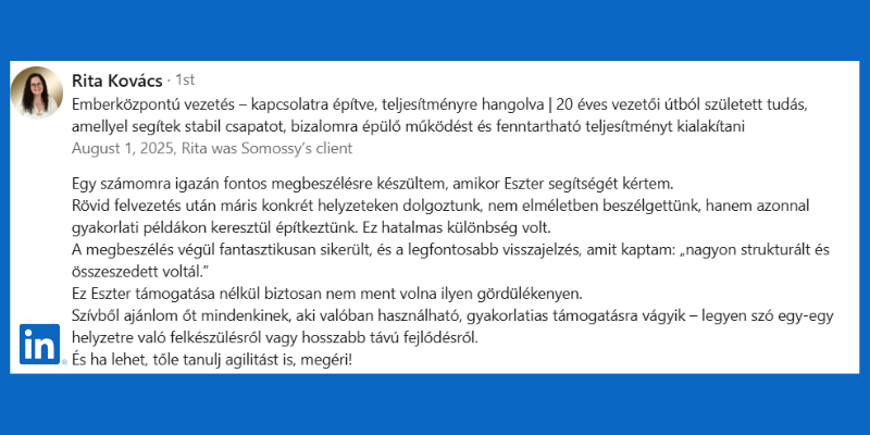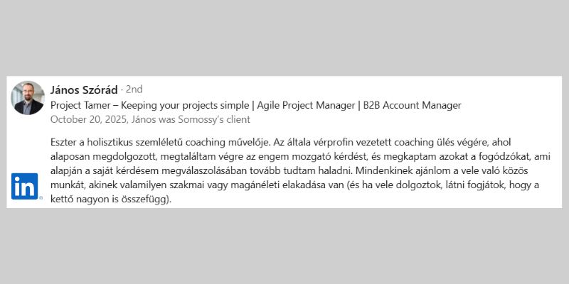 Ma már szakmai és személyes tapasztalataimat coachként kamatoztatom.